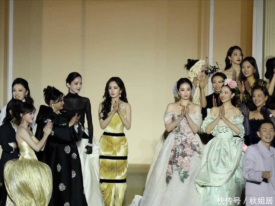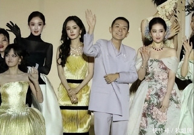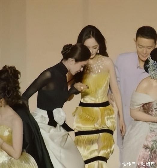 按理说,以杨幂的地位理应站在合影中央区域,但由于她负责开场,需从后台步入场地;