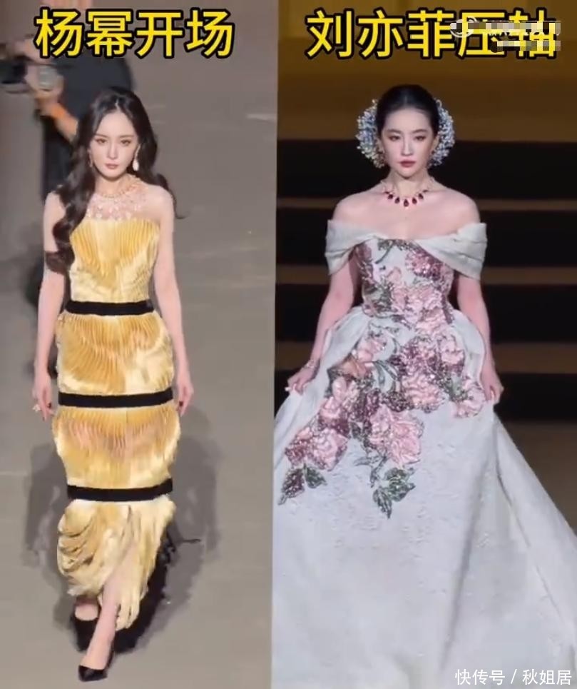 现实是杨幂身穿金色流光高定礼服率先登场,步伐坚定、气势十足,瞬间点燃全场氛围;